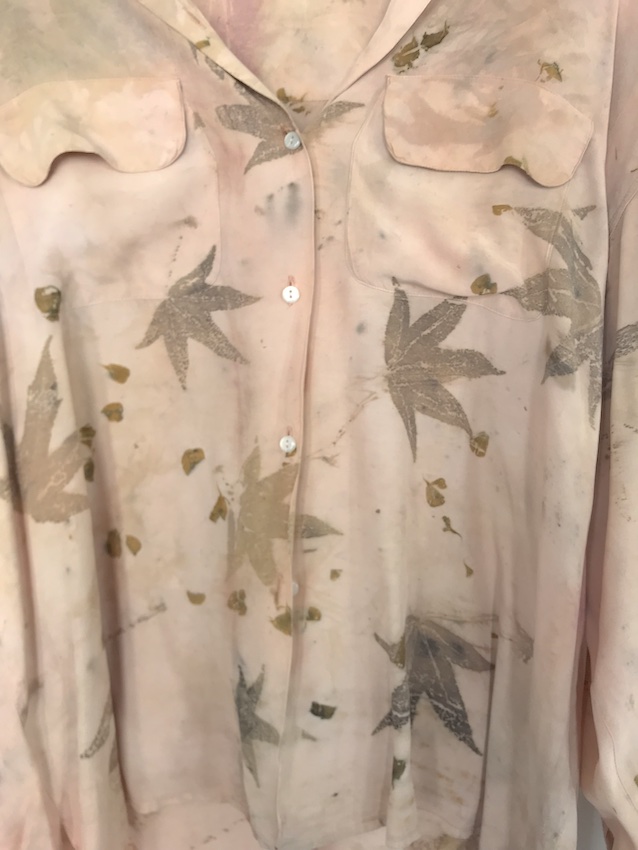 Blouse van katoen ecoprint , bedrukt met alleen bladeren en gekleurd met pigment uit de natuur.